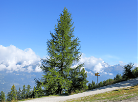 на сухих скелетных почвах горных склонов. В таких неблагоприятных условиях лиственница бывает низкорослой и чахлой.