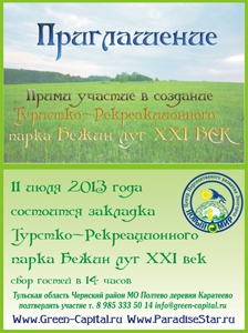 11 июля 2013 года состоится закладка Туристско-рекреационого ландшафтного парка «Бежин луг XXI век», который расположится в Чернском районе Тульской области близ исторического Тургеневского места Бежин луг.