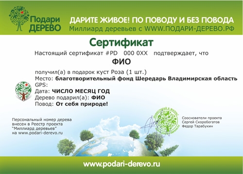 - Деревья в каталоге стоимостью свыше 1510 рублей (саженцы высотой 30–100 см) сразу имеют привязку к региону. Они высаживаются с именными табличками, имеют индивидуальный фотоотчет и GPS-координаты.