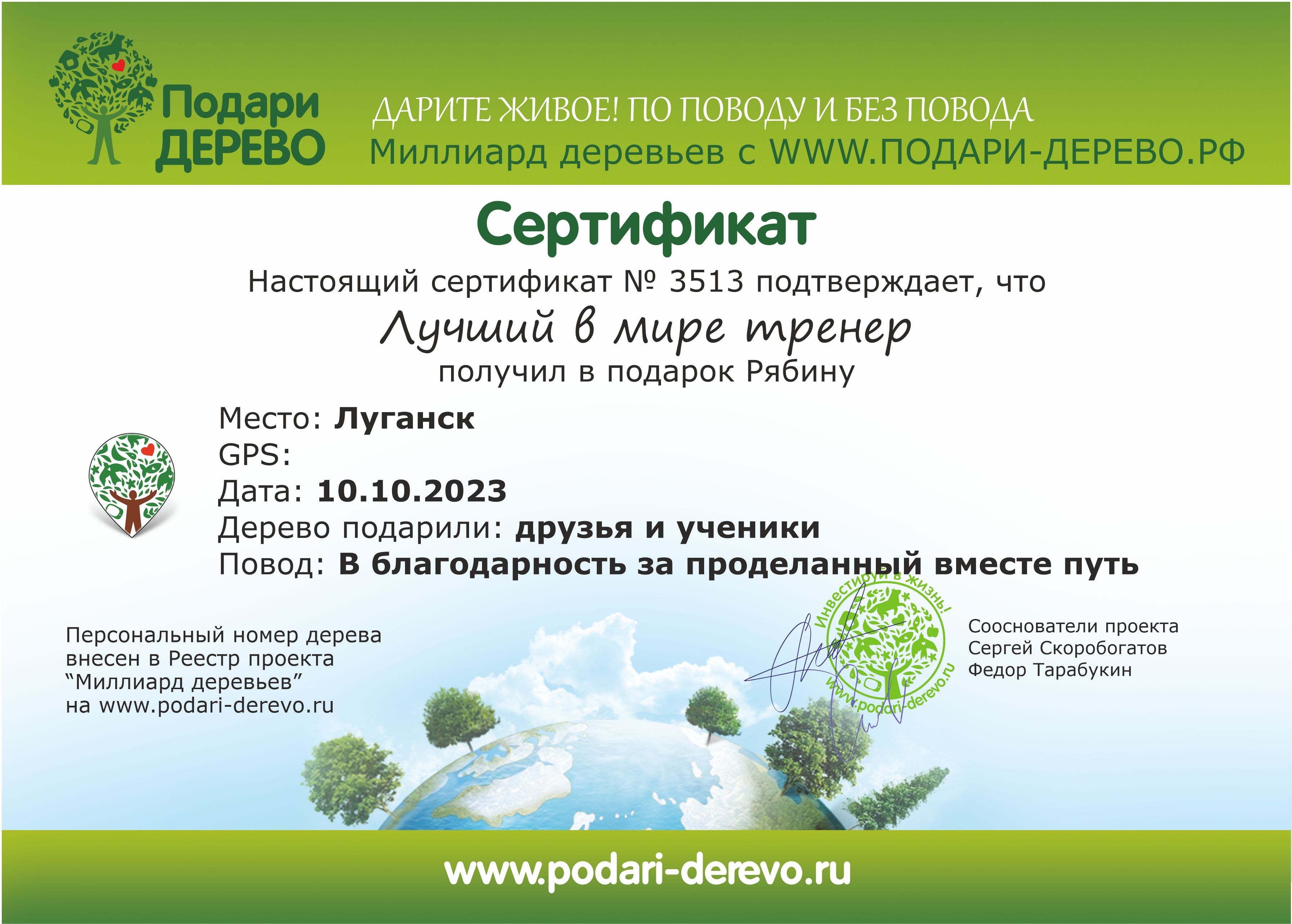 - Деревья от 950 до 1500 рублей (саженцы высотой 30–100 см) также имеют региональную привязку. Высаживаются без именных табличек, предоставляется индивидуальный фотоотчет и общие GPS-координаты периметра, линии или центральной точки места посадки.