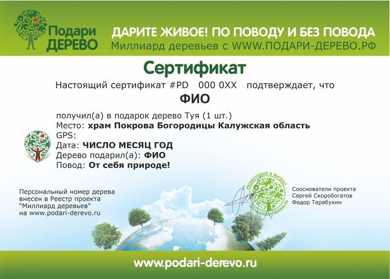 - Деревья в каталоге стоимостью свыше 1510 рублей (саженцы высотой 30–100 см) сразу имеют привязку к региону. Они высаживаются с именными табличками, имеют индивидуальный фотоотчет и GPS-координаты.
